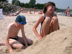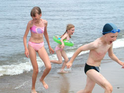 Dzisiaj poszliśmy na plażę. Pogoda była super, ale woda zimna.Mimo to bawiliśmy się świetnie.