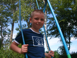 Bartek podczas wbijania gwoździa |