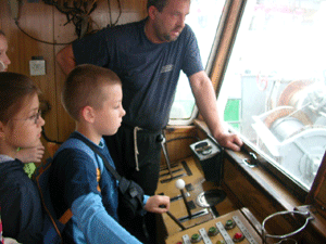 Właściciel kutra, pan Krzysztof, pokazał nam wszystkie urządzenia i wyjaśnił jak działają. |