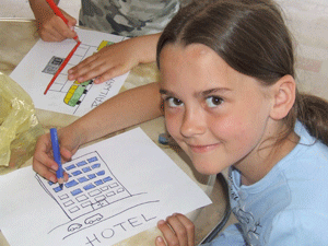 Dzisiaj uczyliśmy się nazw różnych miejsc w mieście. Najpierw musieliśmy je narysować. |