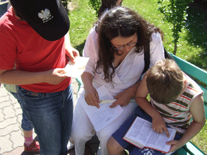 Podzieliliśmy sie na dwie drużyny. Każda drużyna dostała polecenie po angielsku jak dotrzeć do następnego polecenia. Niezbędne były słowniki. |
